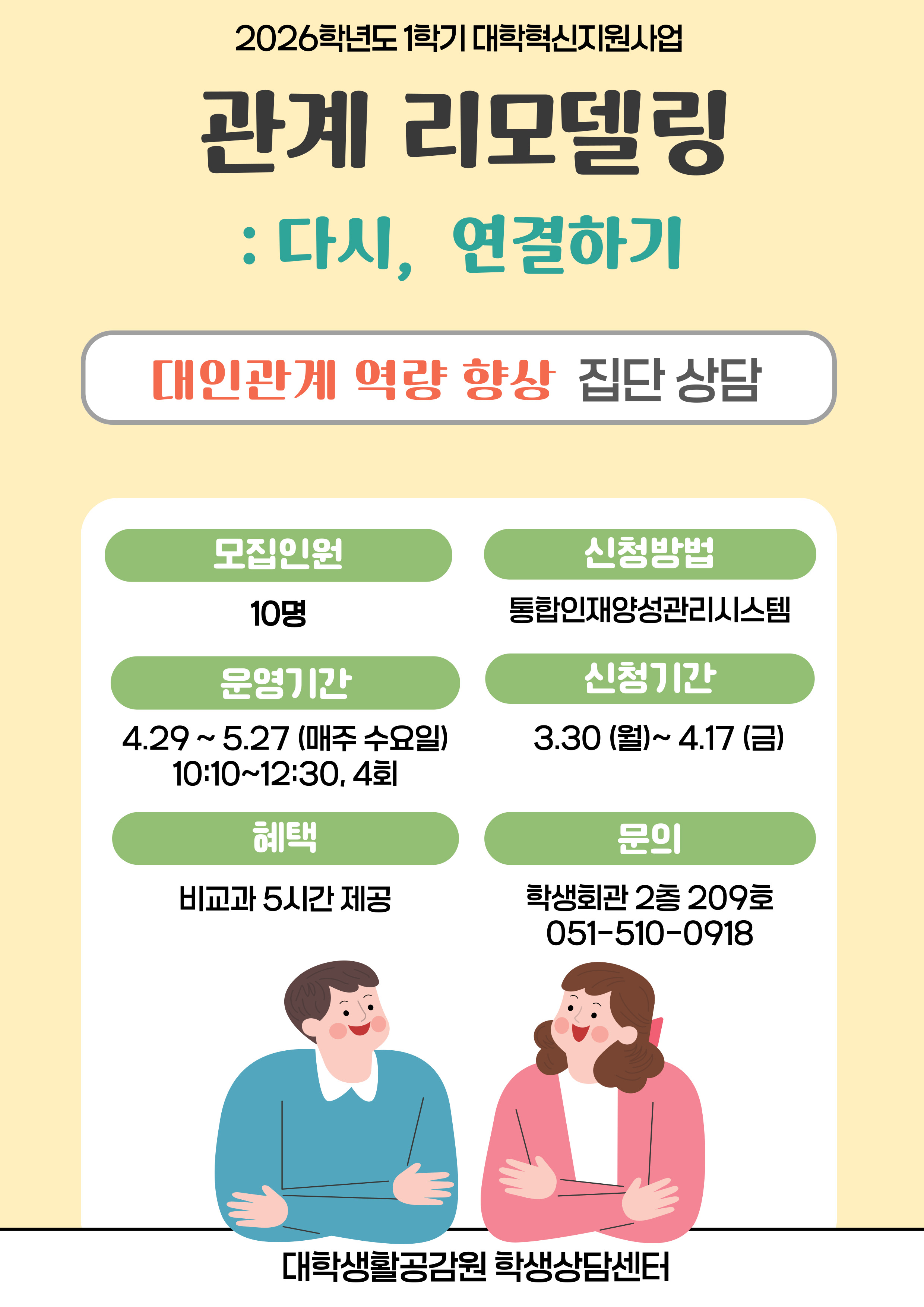 2026학년도 대인관계 역량 향상 집단상담 '관계 리모델링: 다시, 연결하기' 프로그램(1학기, 비교과 5시간)