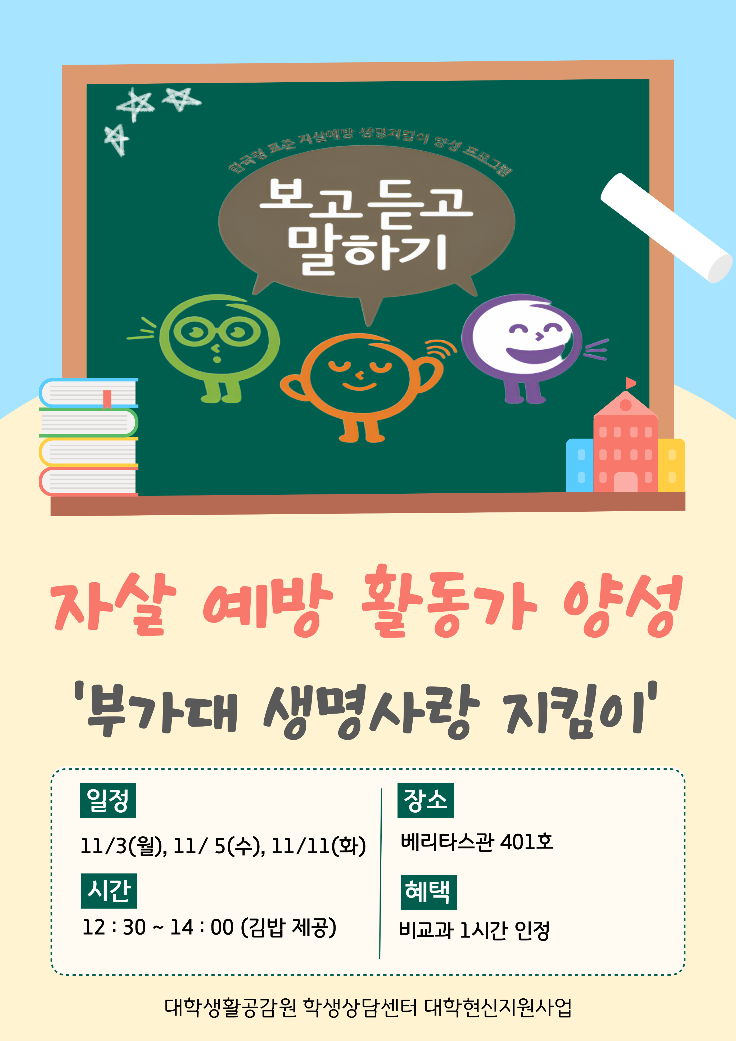 2025학년도 자살예방 활동가 양성 '부가대 생명사랑 지킴이'(3차)