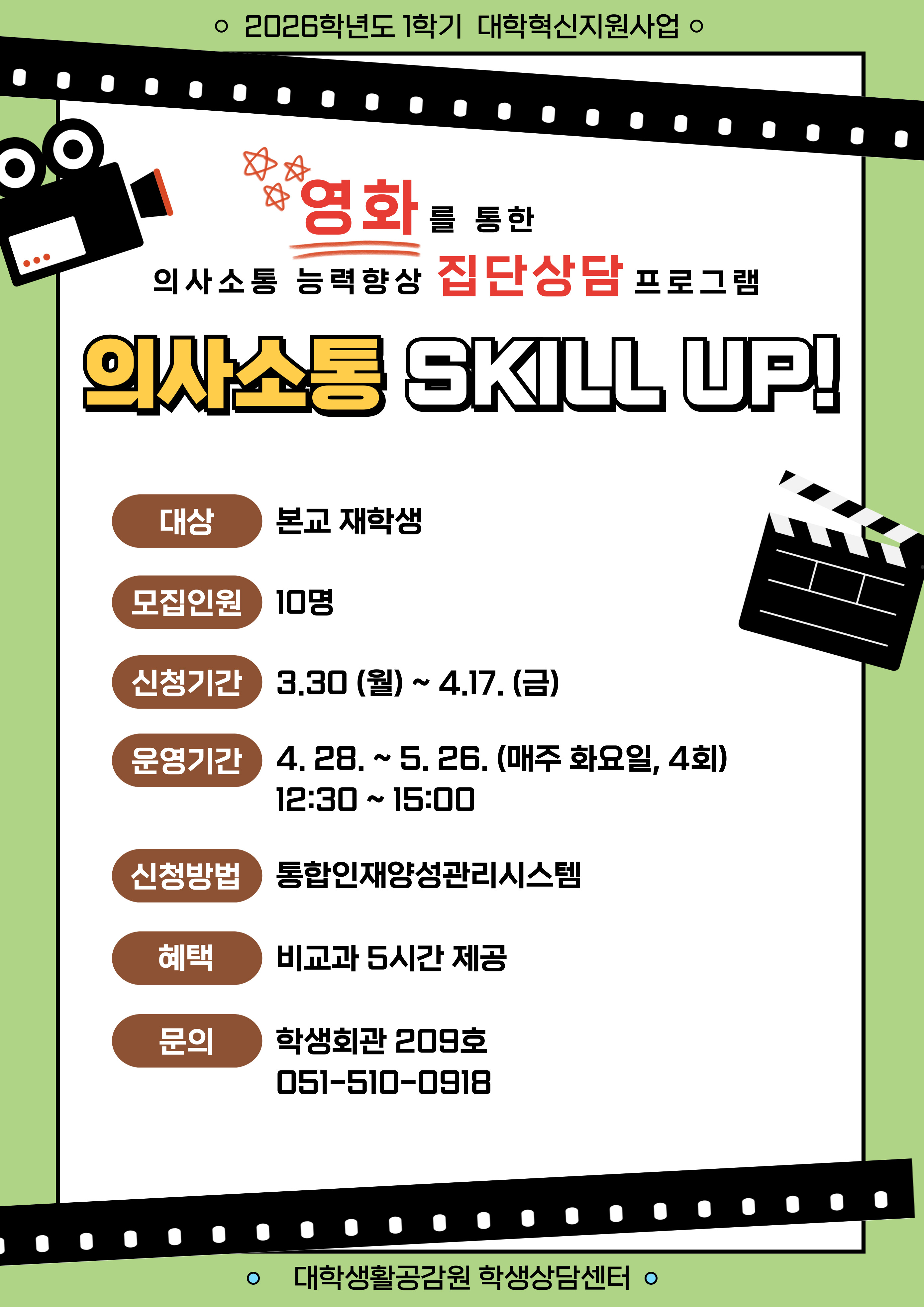 2026학년도 의사소통 능력 향상 집단상담 '의사소통 skill up!' 프로그램 (1학기, 비교과 5시간)