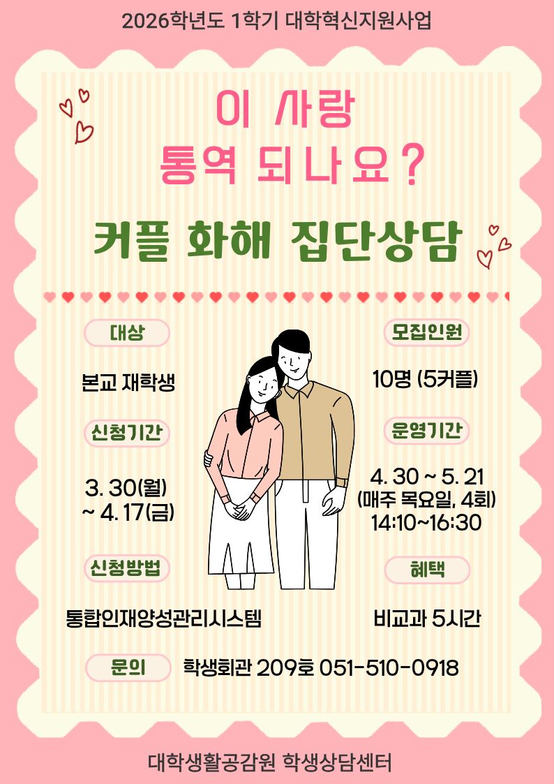 2026학년도 커플 화해 집단상담 '이 사랑 통역 되나요?' 프로그램 (1학기, 비교과 5시간)